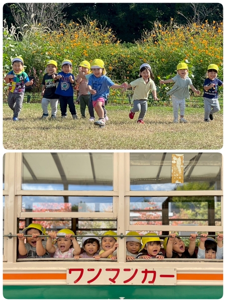 芝生でよーいドンしたり、電車にも乗りましたよ😊