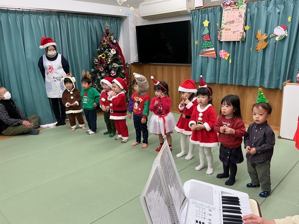 「おはようのうた」「あわてんぼうのサンタクロース」を歌いました🎶