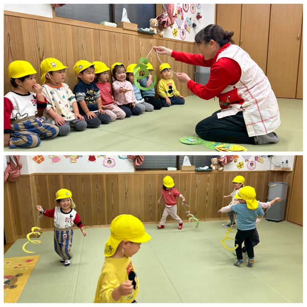 くるくる回るたこを持ってみんな大喜びです。