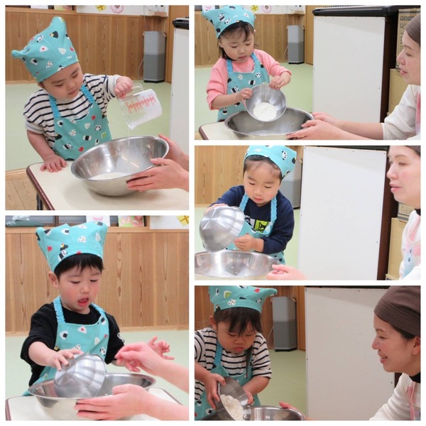 牛乳を入れたら粉を入れましょう🌟