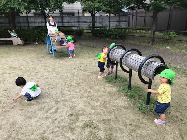 前までは公園に着くと座ってお砂遊びが多かったのですが、最近はお友だちとよーいどんと走りっこをしたり、少し難しい遊具に挑戦したりと身体を使って遊ぶことが増えてきました。
