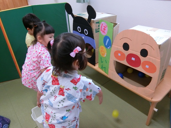 今日は保育の一環で、プチ夏祭りを開催しました。