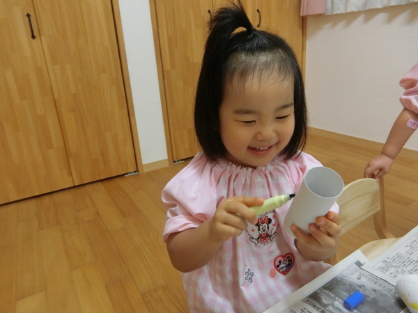 真剣な表情をしながら、でも「次は何色にしようかな~♪]と楽しそうに色を塗っていました。