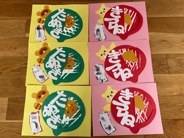 完成した作品を見て子どもたちは、たぬきやきつねに反応していましたが…