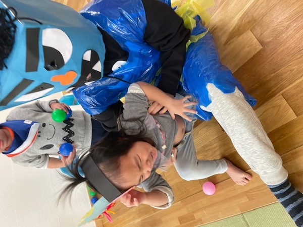 最後はみんなでボールを投げて鬼を退治することができました!!