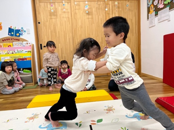 優しくお友だちを押したりニコニコ楽しんでくれていました(^^)
