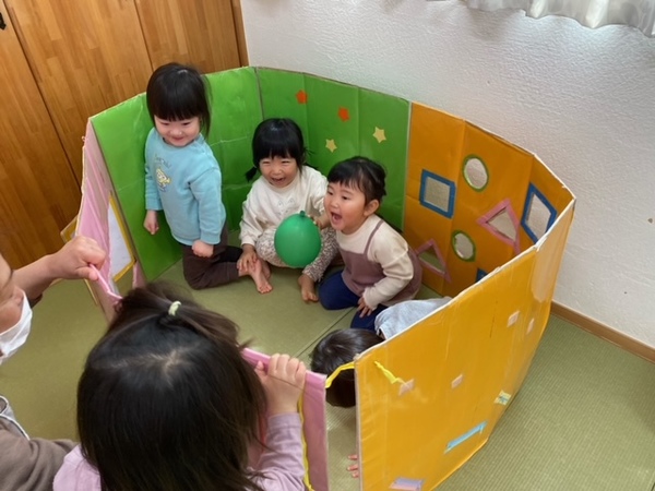 手作りプレイハウスと色々なコーナーを作り楽しみました♡