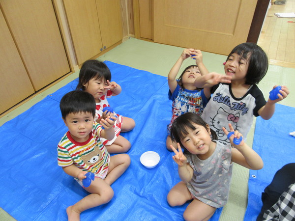 ぞう組さんが残り少ない夏の遊びの一つとして、スライムをしました。