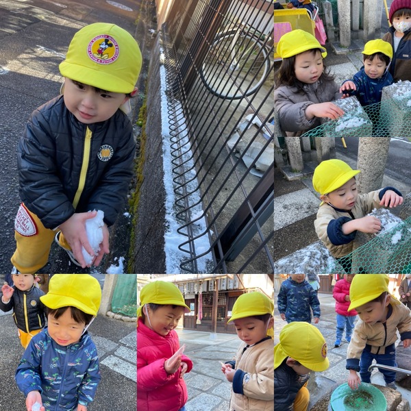 初雪に水には氷が張っていて、手が赤くなるくらいへっちゃらで子ども達は珍しそうに触っていました。