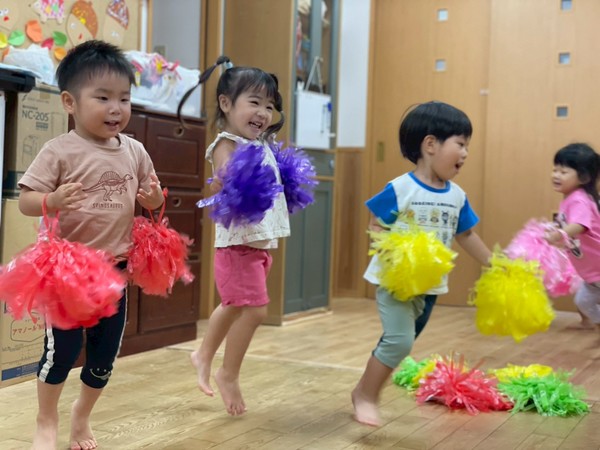 好きな色のポンポンを持ってダンスがスタートです🚩