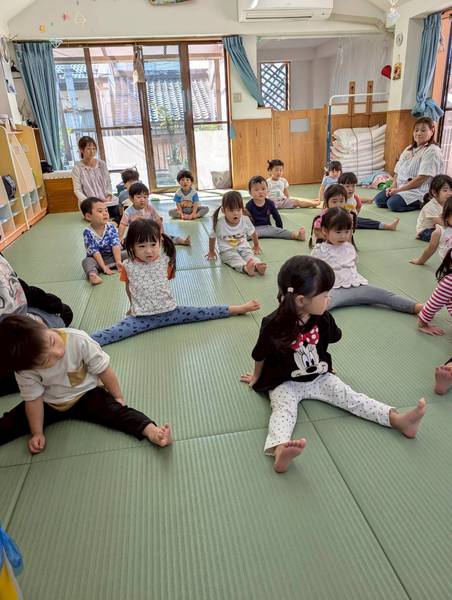 まずは体操もしました。身体のやわらかいお友だちがいますね。