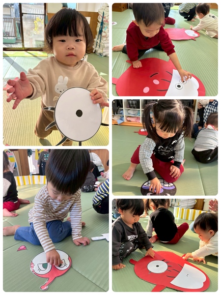 お正月遊びにちなんで福笑いと羽根つきをして
