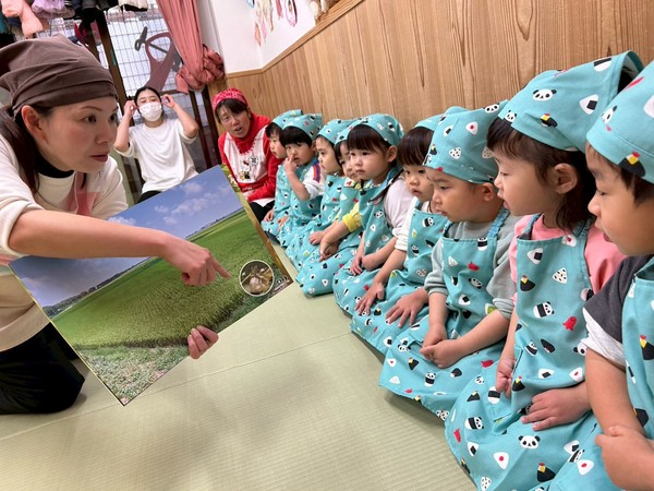 今日は食育でお米についてお話を聞きました。