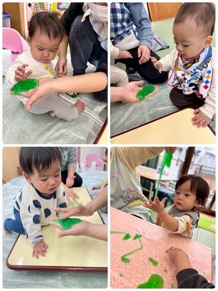 感触に驚きながらも、興味深々な様子で感触を楽しむ子ども達の姿をご覧ください。